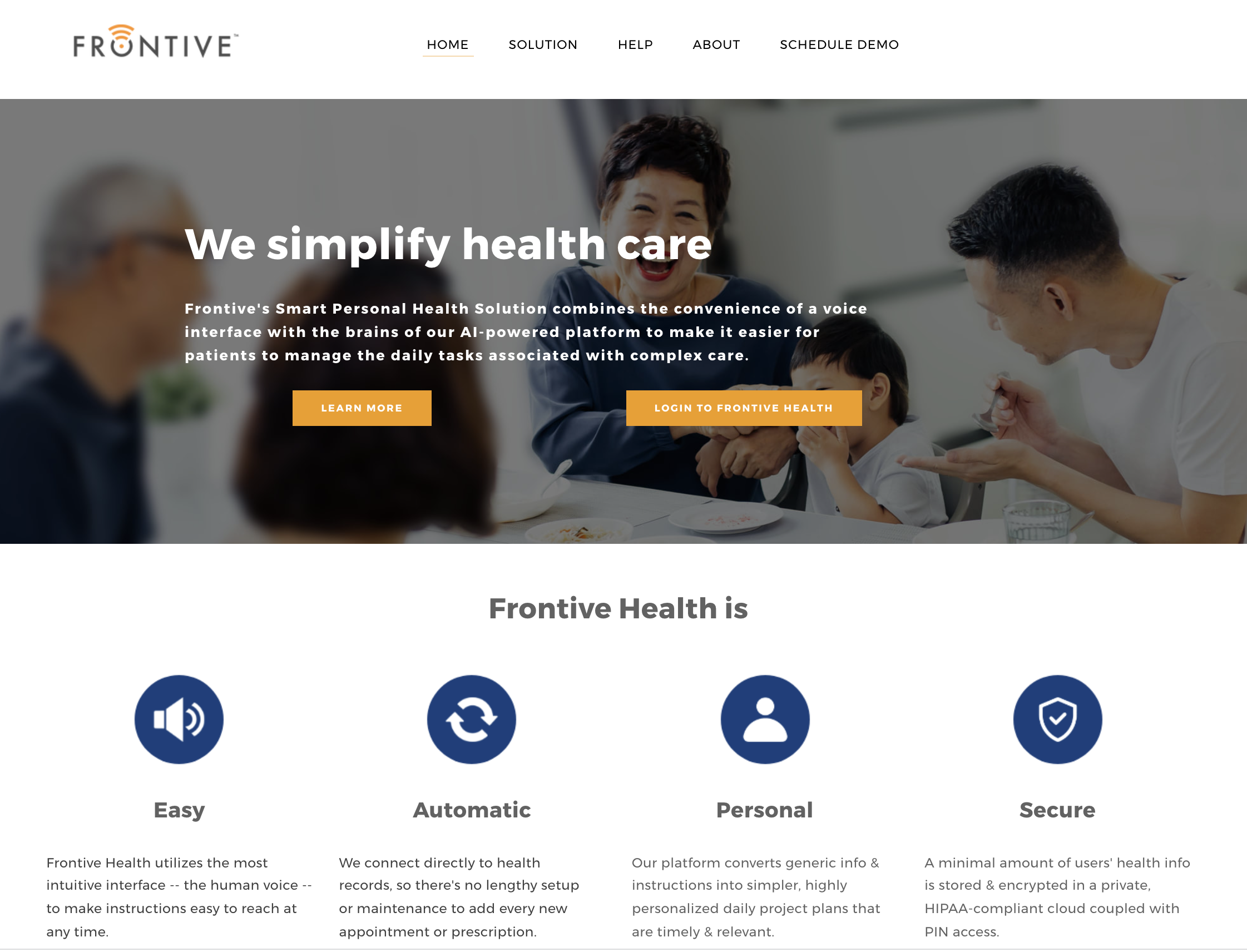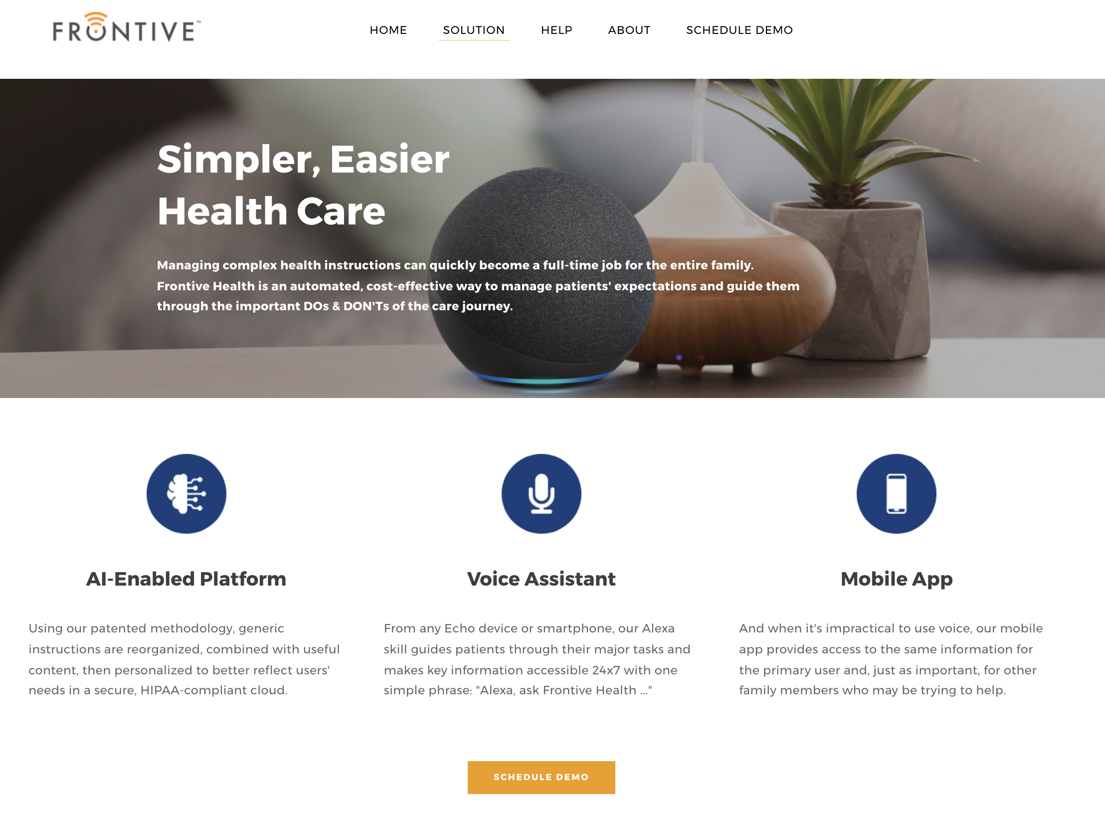 Frontive is a health tech company that utilizes AI technology and Amazon Alexa to simplify health management for patients and their caregivers. I came across their site, noticed some design issues, and offered my services.